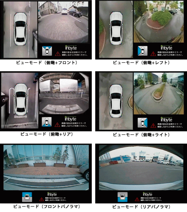 また、付属の専用リモコンにて、右上に表示するカメラ映像を自由に切り替えたり、前方または後方の映像を大きく表示させることもできます。